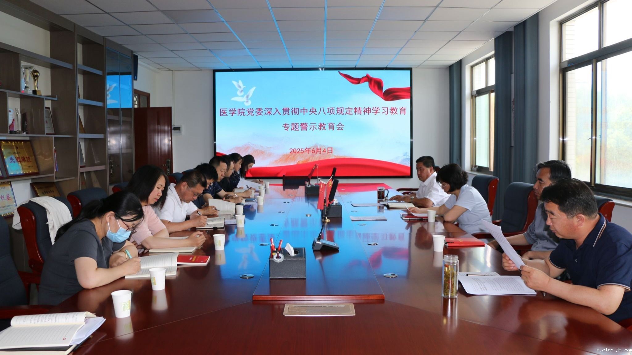 6月4日,医学院党委开展深入贯彻中央八项规定精神学习教育专题警示教育会。学院科级以上干部、党支部书记参加了专题警示教育会。 会上学习了中共中央 国务院《党政机关厉行节约反对浪费条例》和省委书记胡昌升在省委警示教育会上的讲话精神;通报学习了中央层面深入贯彻中央八项规定精神学习教育工作专班、中央纪委办公厅公开通报2起党员干部违规吃喝严重违反中央八项规定精神典型问题,甘肃省省级层面学习教育工作专班《关于印发〈...
